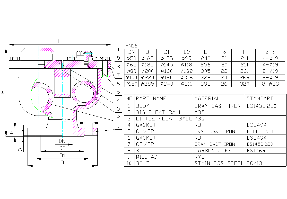 2 ) Class: PN10, PN16.125LB, 150LB